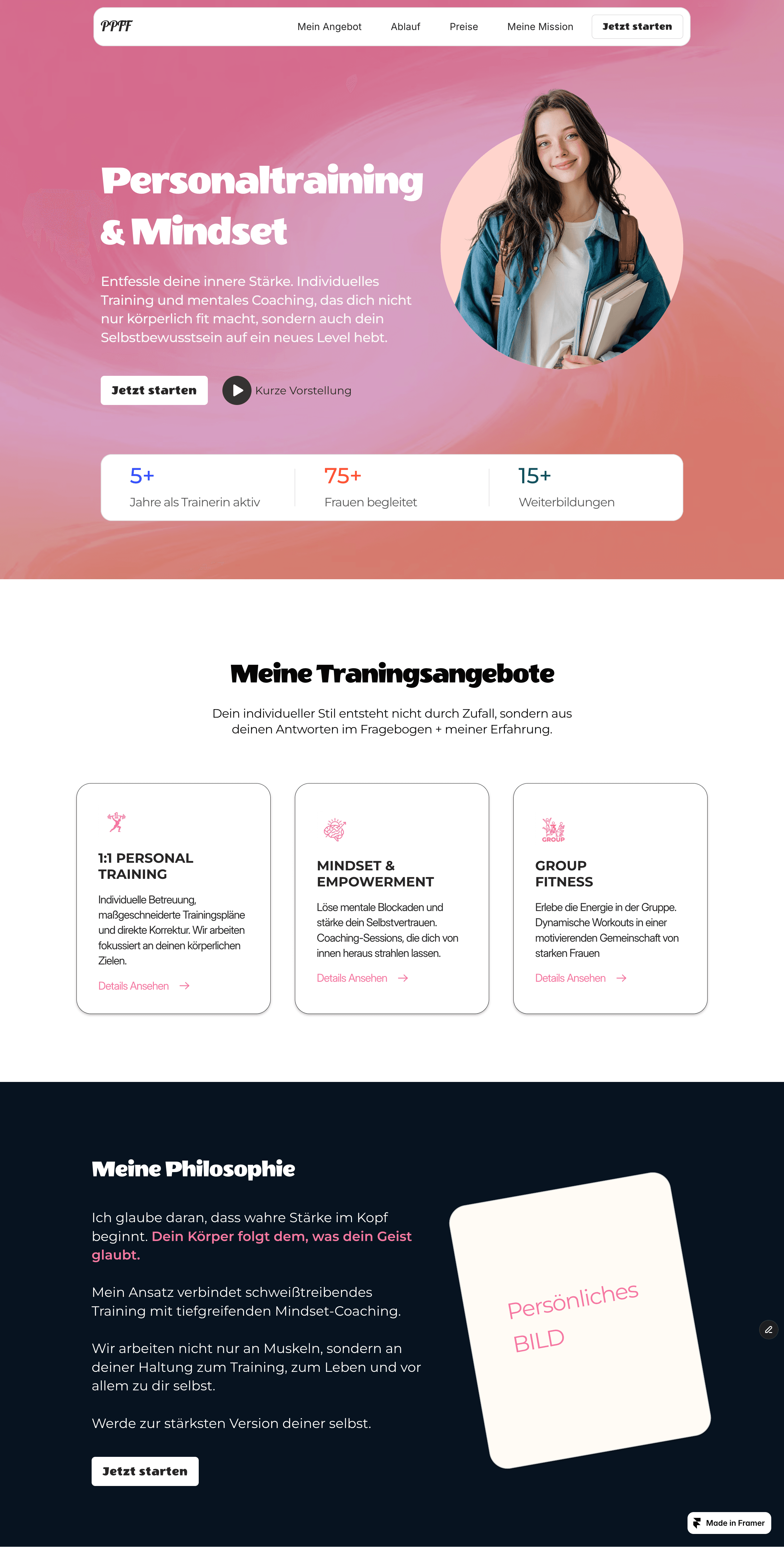Das ist der Moment, in dem aus deinem Fragebogen ein echter Auftritt wird. Ich setze alles in Framer um: Design, Struktur, Texte, Icons, mobile Optimierung, komplett aus einem Guss.