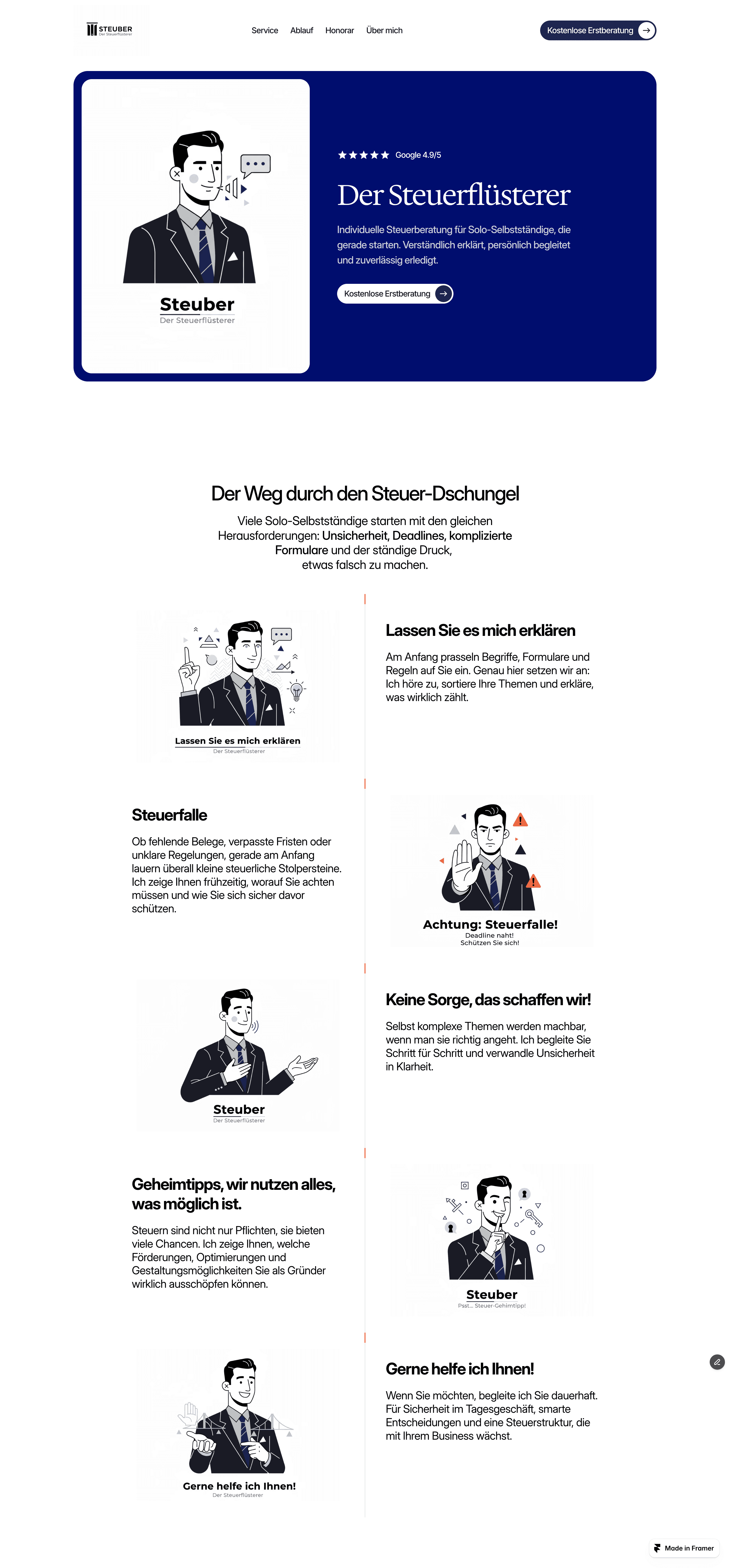 Immer wollten mir Agenturen ständig irgendwas mit Branding-Frameworks und Conversion-Funnels erzählen. So was brauche ich nicht, ich wollte einfach nur eine vernünftige Seite, die ich Kunden schicken kann. Der Ablauf hier war super simpel und stressfrei. Für 840 € hätte ich sowas nie erwartet. Jetzt hab ich endlich meine Ruhe und kann mich um meine Aufträge kümmern.